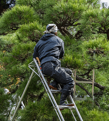 お客様のお宅へご訪問し、樹木の形を整えたり、風通しを良くしたり、手入れをします。樹木の状態に応じた美しい樹形を維持させること、そして適切に処置して樹木の健康を維持・回復させます。